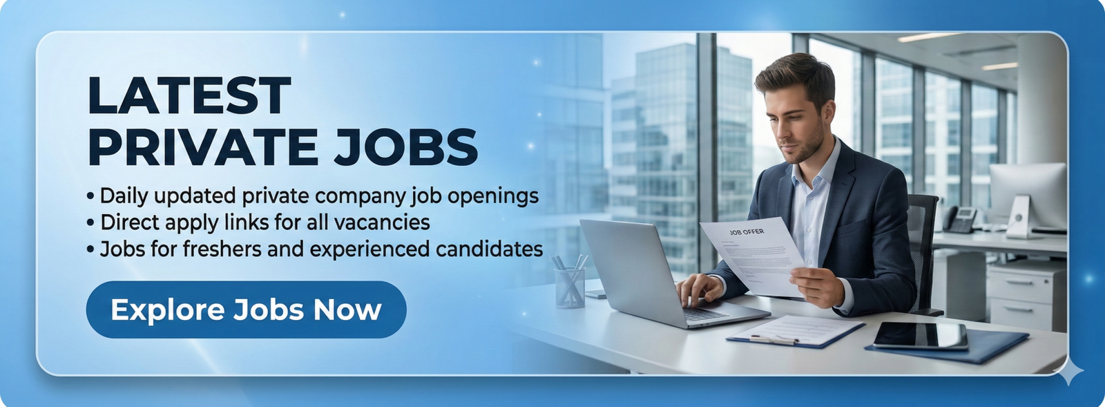 Discover the latest job opportunities for students and freshers. Explore private jobs, government vacancies, internships, and part-time work — all in one place.